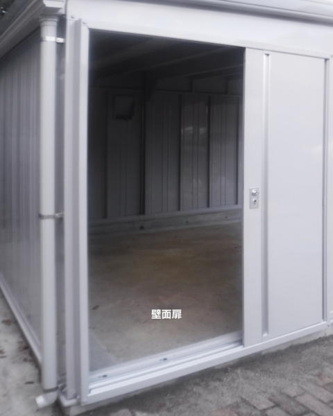 オプション:結露軽減材付屋根、雨とい、明かり窓付シャッター、ガラス窓、壁面扉
