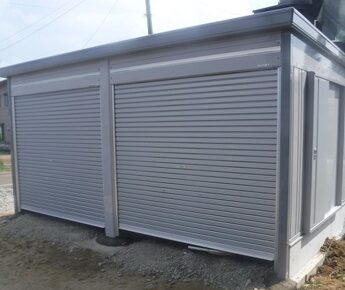 【組立完了】 本体:イナバガレージ「ガレーディア」 GRN 2642SL-2(豪雪型) シャッター色CS オプション:結露軽減材付屋根、雨とい、壁面扉 工事内容:本体組立、オプション取付 上越スチール販売株式会社 〒94…
