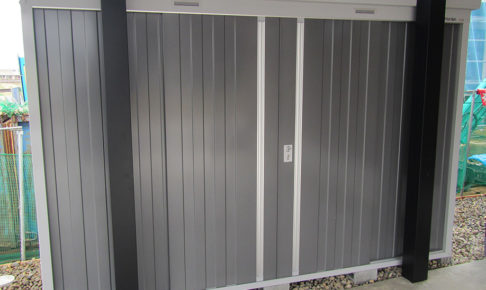 【組立完了】 本体:イナバ中型物置『ネクスタ』NXN-15S(一般・多雪共通型)扉色FW×2棟 工事内容:本体組立、転倒防止工事