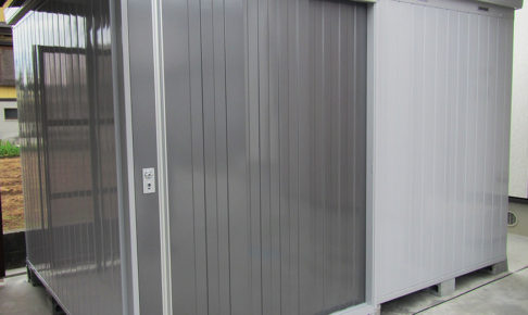 【組立完了】 本体:イナバ大型物置『ネクスタ』NXN-92H(一般型)扉カラーPG色 オプション:基礎ブロック 工事内容:本体組立